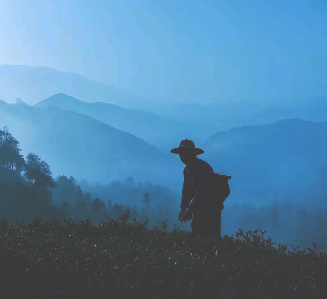 高山采茶记:朦胧晨雾中的茶人剪影